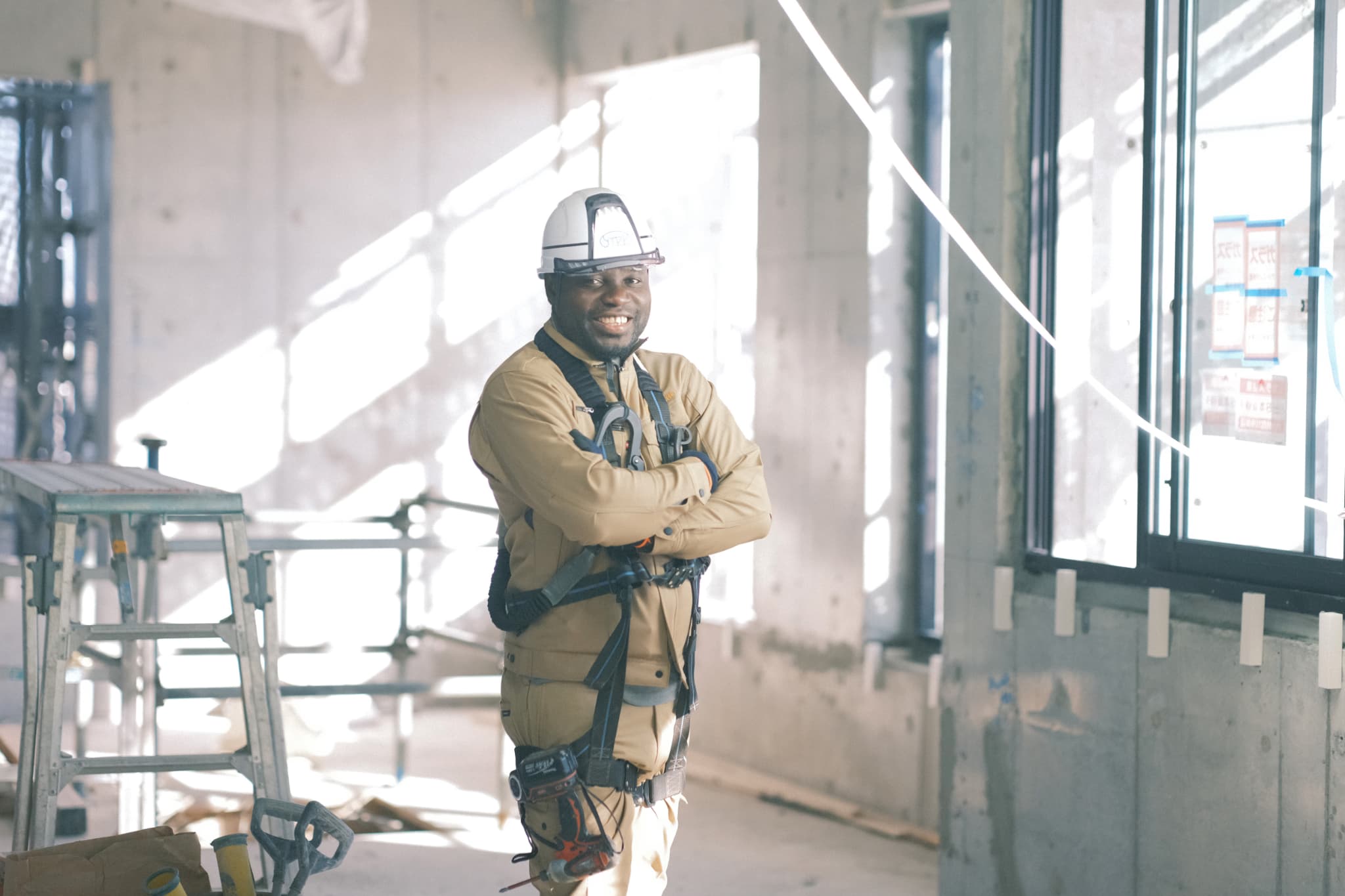 日本に来たのは、高校卒業後すぐです。ガーナは仕事が無いんですよね。既に日本で働いていた親戚のすすめで来日し、すぐに日本語学校に通いました。「働くなら、学校に通った方がいい」とアドバイスしてくれたんです。その後、大学で国際ビジネスを学びました。卒業後は外国人でも働きやすい建設業を選びました。体を動かす仕事の方が合っているので、この業界に入ってよかったと感じています。